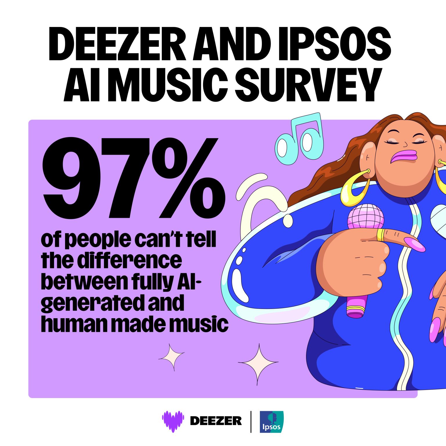 En un nuevo estudio realizado por Deezer junto a Ipsos en ocho países, 9.000 personas escucharon tres canciones: dos generadas 100% por inteligencia artificial y una compuesta por humanos. El resultado fue claro (y desconcertante): el 97% no pudo diferenciar cuál era cuál.