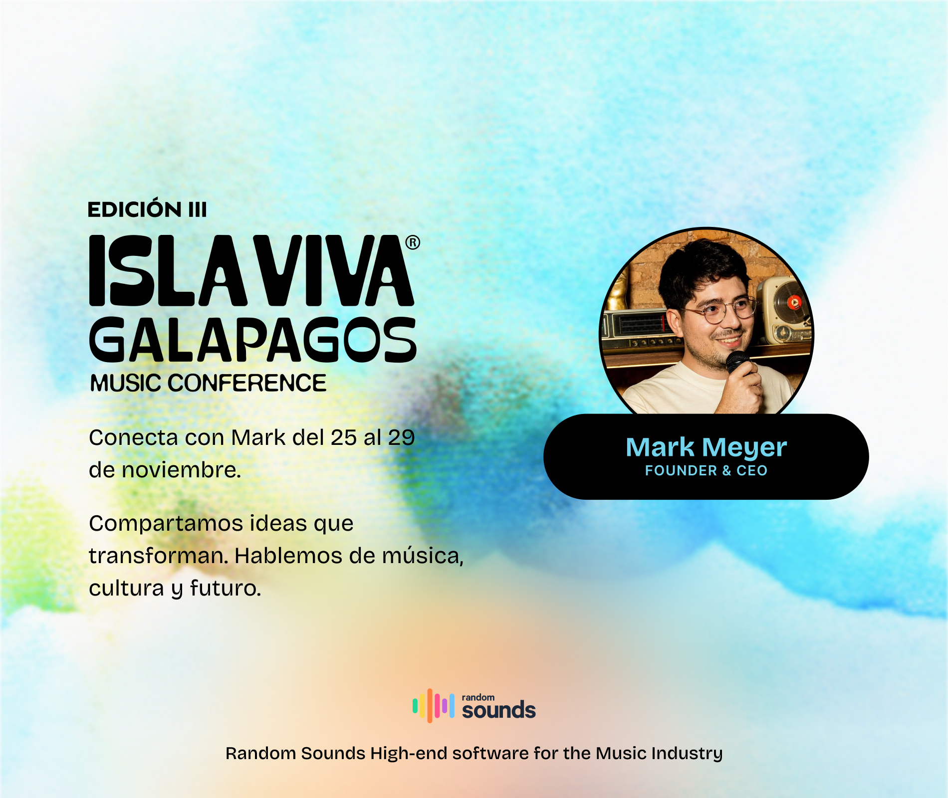 Del 25 al 28 de noviembre, Random Sounds estará presente en Isla Viva, el mercado cultural que conecta música, arte y sostenibilidad desde San Cristóbal, en las Islas Galápagos. En esta edición marcada por el concepto de Hermandad, Mark Meyer, Founder & CEO de Random Sounds, será parte de las conferencias de Isla Pro.