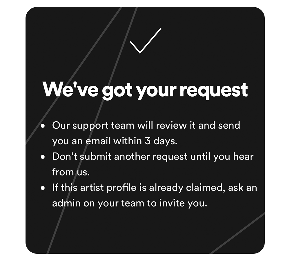 Solo puedes solicitar el acceso a un perfil de artista que ya existe en Spotify 👀